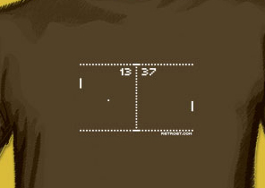 Anyone who has a gamer guy on their holiday gift list should check out this Pong-based t-shirt. In perfectly-acceptable, perpetually-in-style brown, this t-shirt combines style with 8-bit game sensibility. And, I bet most of you geeky peoples can appreciate the oh-so-serendipitous score that’s totally leet.
